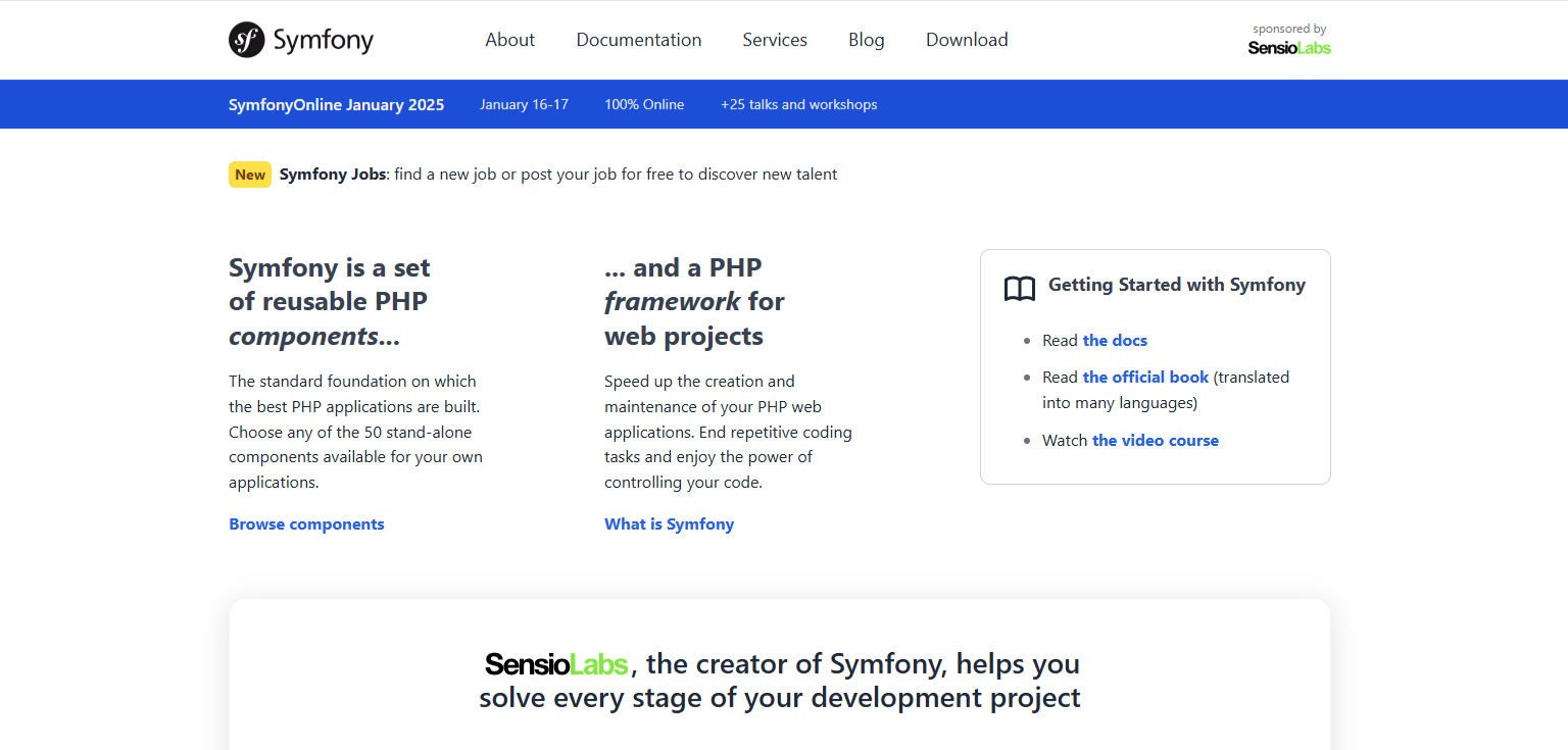 Symfony is a set of reusable PHP components and a PHP framework for web projects. It provides a robust structure and extensive components that can be used independently. Symfony is perfect for building complex enterprise-level applications.